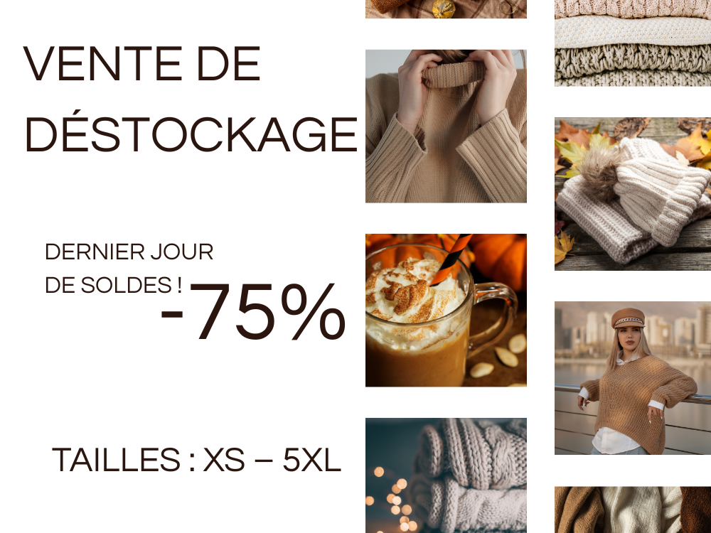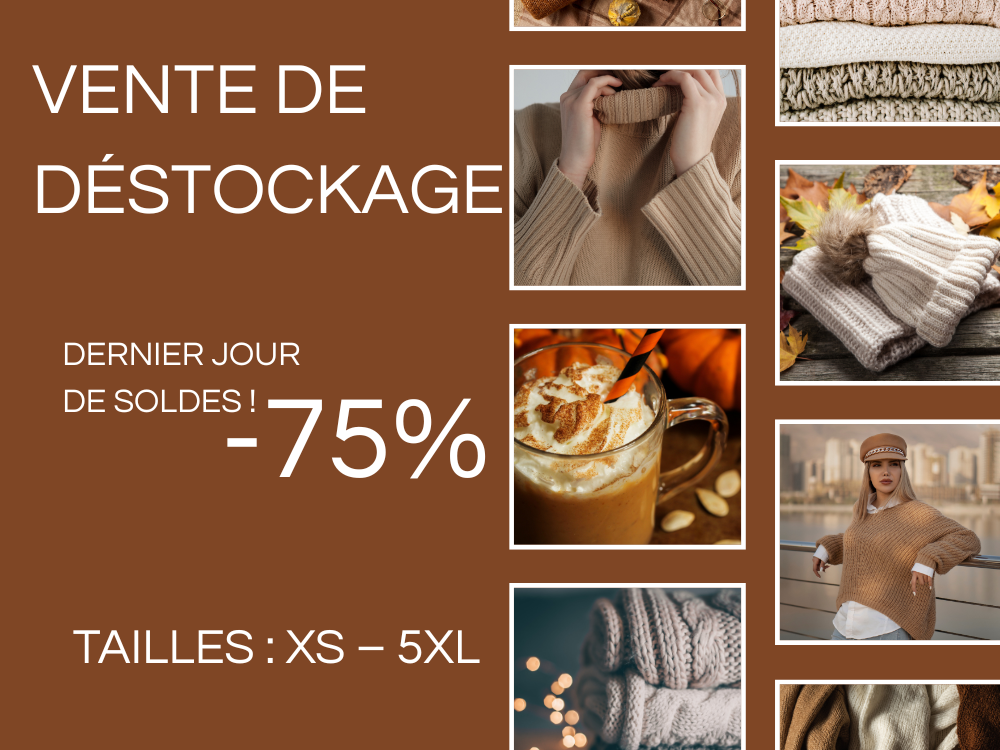Nous proposons tous les articles restants avec des réductions incroyables allant jusqu’à 75 %. Ne manquez pas cette dernière chance d’obtenir une pièce de notre collection ! Vérifiez vite si votre taille est encore disponible et passez commande avant qu’il ne soit trop tard.